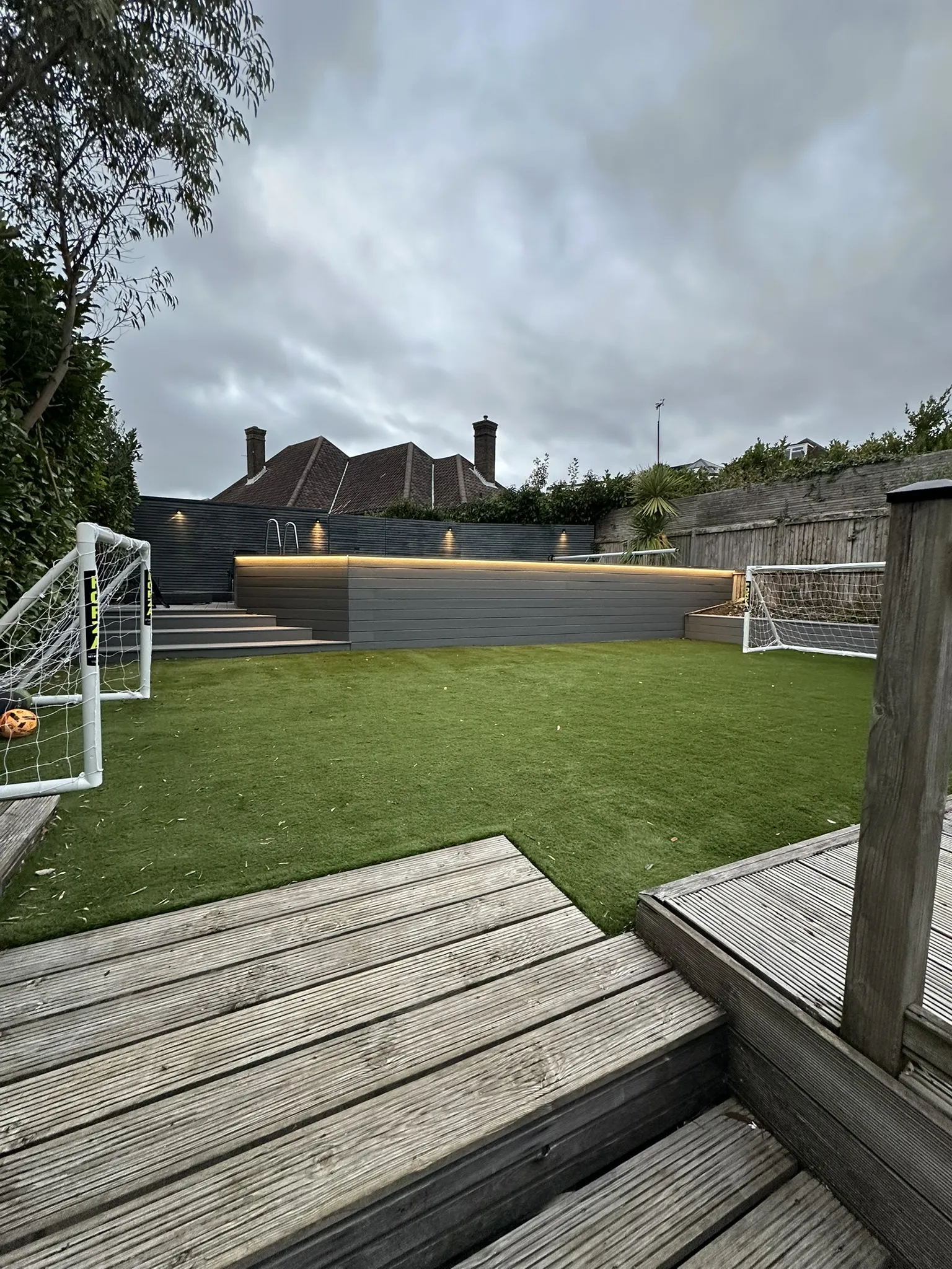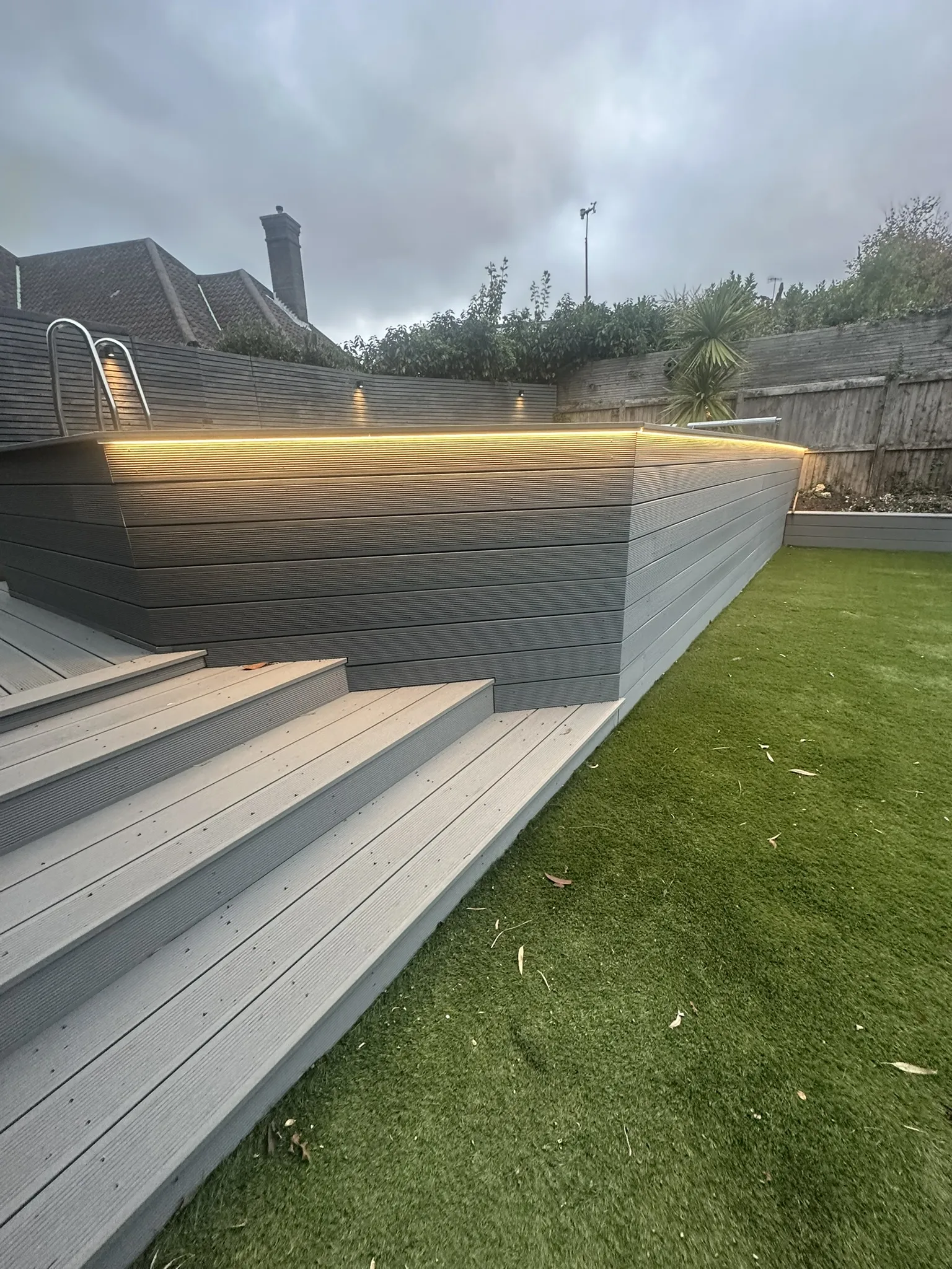 The lighting system we installed completely transformed the customer’s garden into a stunning, usable space. The wireless switching system now allows the client to set the mood by controlling circuits independently, and the warm white lighting enhances grey surfaces, blending visual appeal with a welcoming ambiance. It was a perfect design for the space, successfully balancing functional lighting for safety with feature lighting to highlight key areas. Our customer now enjoys an outdoor space with their much desired ‘WOW’ factor.