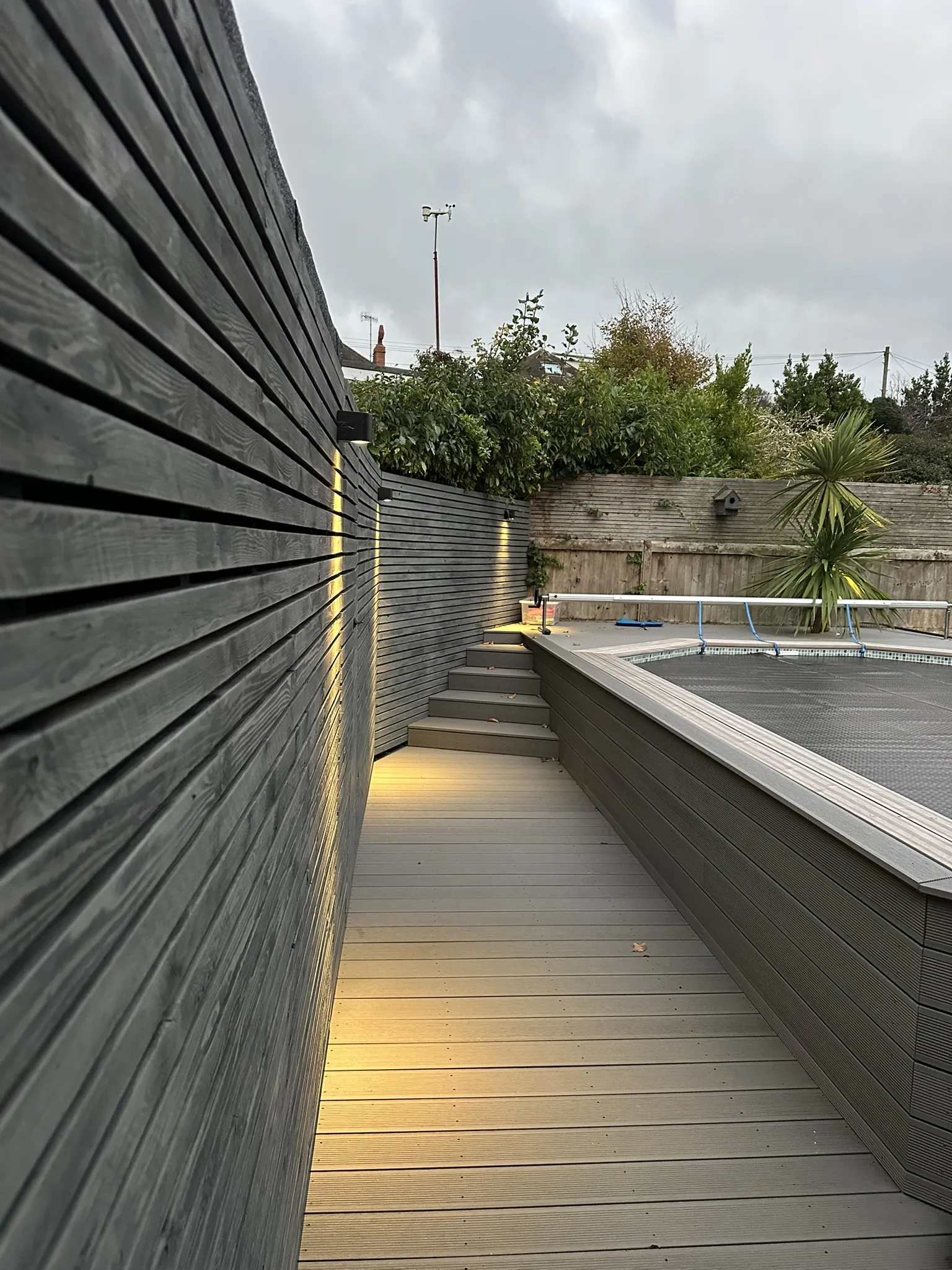 A residential homeowner approached us looking for support with their electrics for their back garden refurbishment project, which included the addition of a new pool. They wanted outdoor lighting that would complement the landscaping works, enhance the area, and make the space a usable and atmospheric place to enjoy in the evenings. Their goal was to create a warm, inviting atmosphere perfect for family enjoyment and entertaining guests – and we had just the solutions and expertise to help them achieve their dream.